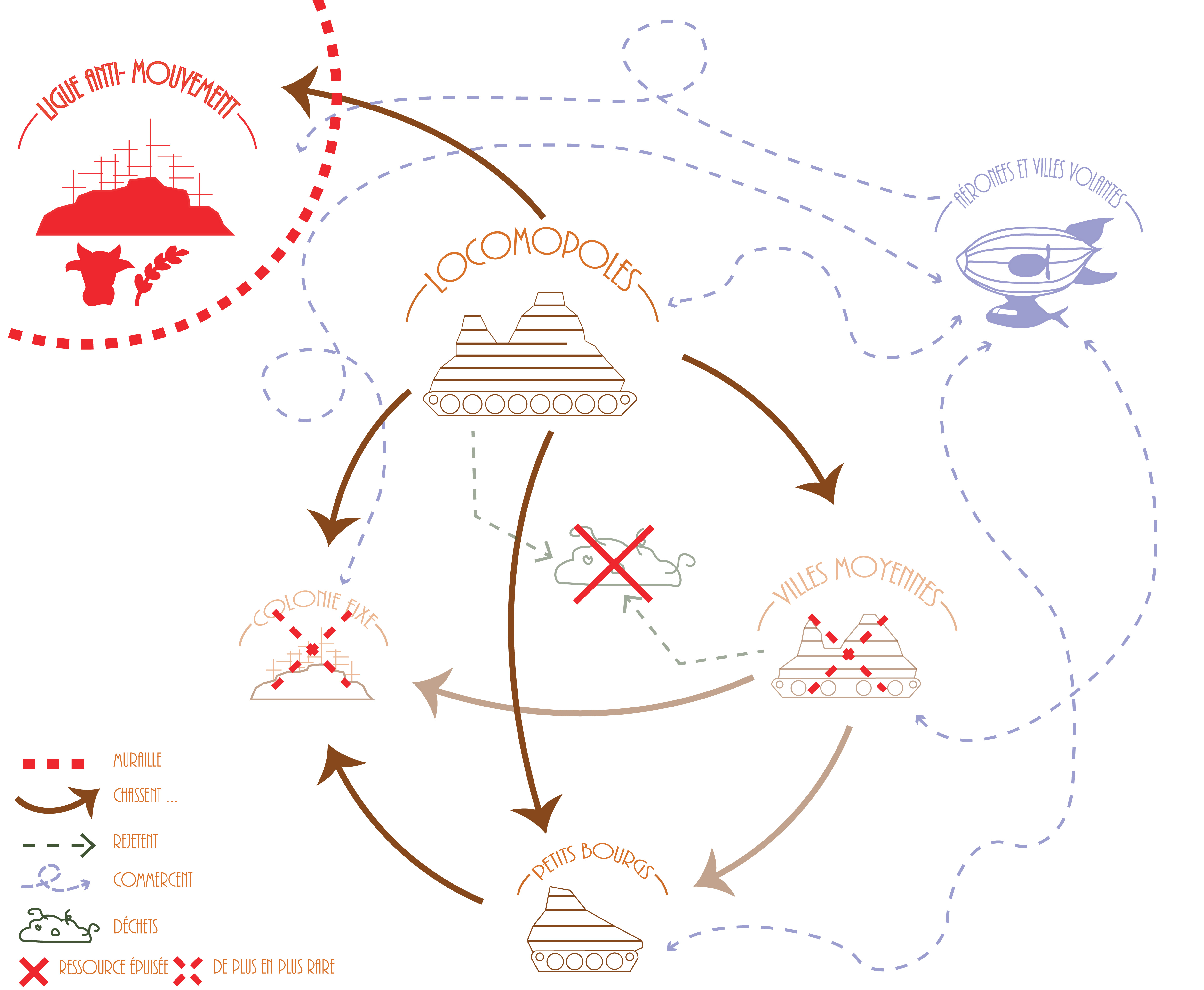 Notons également que certaines bourgades mobiles survivent en avalant les déchets rejetés par les locamopoles et villes moyennes en mouvement.